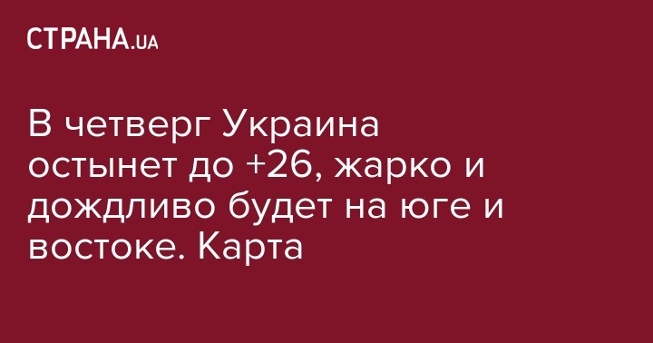 В четверг Украина остынет до +26, жарко и дождливо будет на юге и востоке. Карта