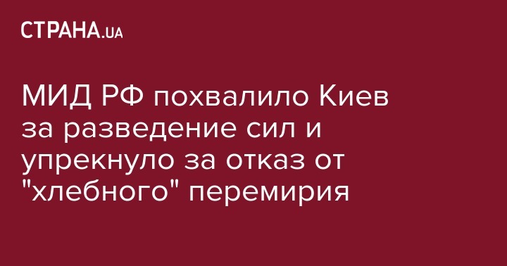 МИД РФ похвалило Киев за разведение сил и упрекнуло за отказ от "хлебного" перемирия