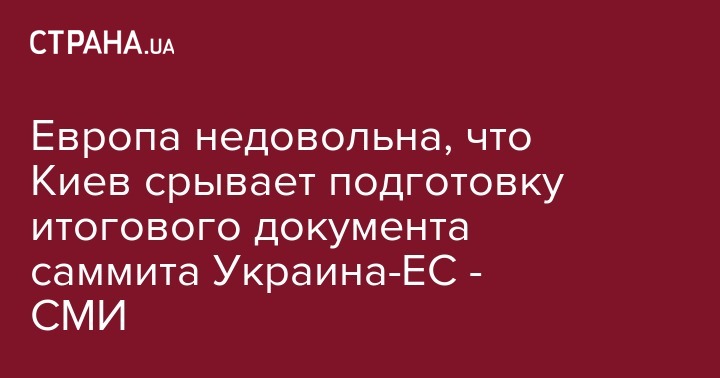 Европа недовольна, что Киев срывает подготовку итогового документа саммита Украина-ЕС - СМИ