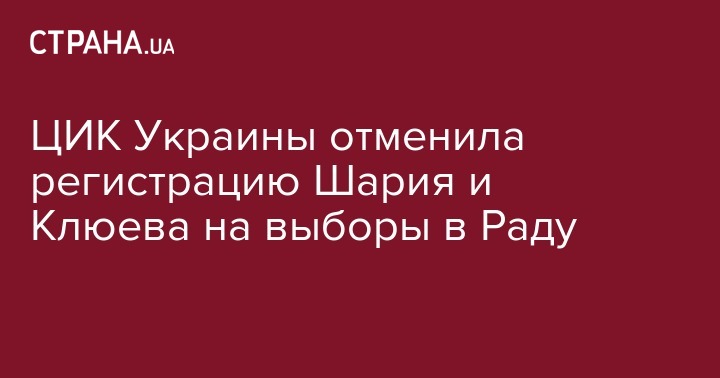 Центральная избирательная комиссия на заседании в среду отменила регистрацию бывшего главы администрации экс-президента Виктора Януковича Андрея Клюева кандидатом в народные депутаты на одномандатном избирательном округе №46, а также блогера Анатолия Шария на внеочереденых парламентских выборах, запланированных на 21 июля.