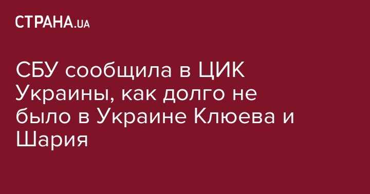 Служба безопасности Украины обработала имеющуюся информацию и предоставила материалы в ЦИК об отсутствии в Украине зарегистрированных кандидатами в парламентарии Анатолия Шария и Андрея Клюева, сообщил пресс-центр СБУ.
