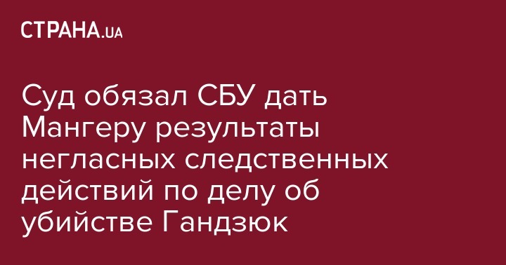 Шевченковский районный суд Киева обязал СБУ предоставить информацию о результатах НСРД - негласных следственных (розыскных) действий Владиславу Мангеру, фигуранту дела об убийстве херсонской активистки, и.о. управляющей делами исполкома Херсонского горсовета Екатерины Гандзюк.