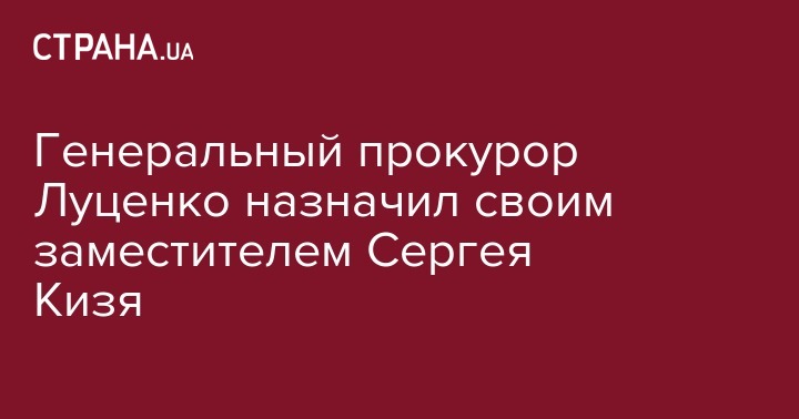 "3 июля 2019 года, приказом Генерального прокурора Украины Юрия Луценко в соответствии с рекомендацией Совета прокуроров Украины на должность заместителя Генерального прокурора назначен государственный советник юстиции 3 класса Сергей Кизь", - сказано в сообщении.