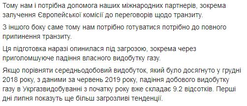 "Если сравнить среднесуточную добычу, которая была достигнута в декабре 2018 года, с данными за июнь 2019 года, то падение суточной добычи газа в "Укргаздобыче" уже составляет 9,2%. Первые дни июля показывают еще более угрожающие тенденции", – написал он. Представитель "Нафтогаза" отметил, что компания вынуждена ожидать прекращения транзита через Украину не только в первом квартале 2020 года, но и в целом после окончания 2019 года.