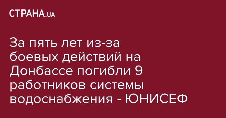 С момента конфликта на Донбассе в 2014 году в результате боевых действий погибли 9 работников системы водоснабжения, еще 26 получили ранения. Об этом свидетельствуют данные ЮНИСЕФ, пишет "Интерфакс-Украина".