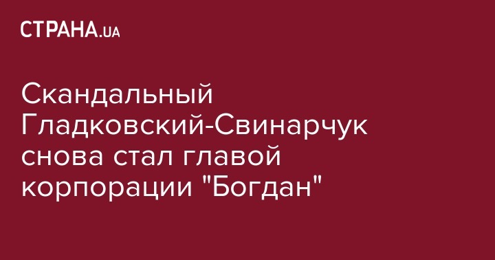Занимавший должность первого заместителя секретаря Совета национальной безопасности и обороны (СНБО) до марта 2019 года Олег Гладковский снова стал главой корпорации "Богдан", которую он возглавлял с момента ее создания в 2005 году до того, как стал госслужащим, передает Интерфакс-Украина.