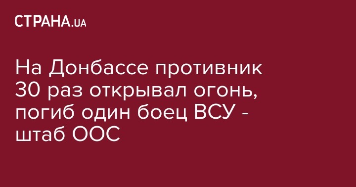 На Донбассе противник 30 раз открывал огонь, погиб один боец ВСУ - штаб ООС
