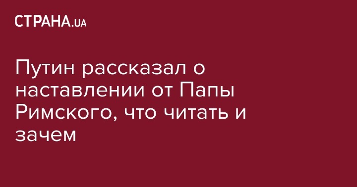 Путин рассказал о наставлении от Папы Римского, что читать и зачем