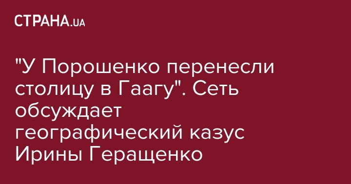 Вице-спикер Верховной Рады и член партии экс-президента Петра Порошенко Ирина Геращенко серьезно оконфузилась. Проводя ликбез для пресс-службы президента Владимира Зеленского, она заявила, что Гаага - столица Нидерландов (на самом деле Амстердам).