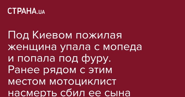 Под Киевом пожилая женщина упала с мопеда и попала под фуру. Ранее рядом с этим местом мотоциклист насмерть сбил ее сына