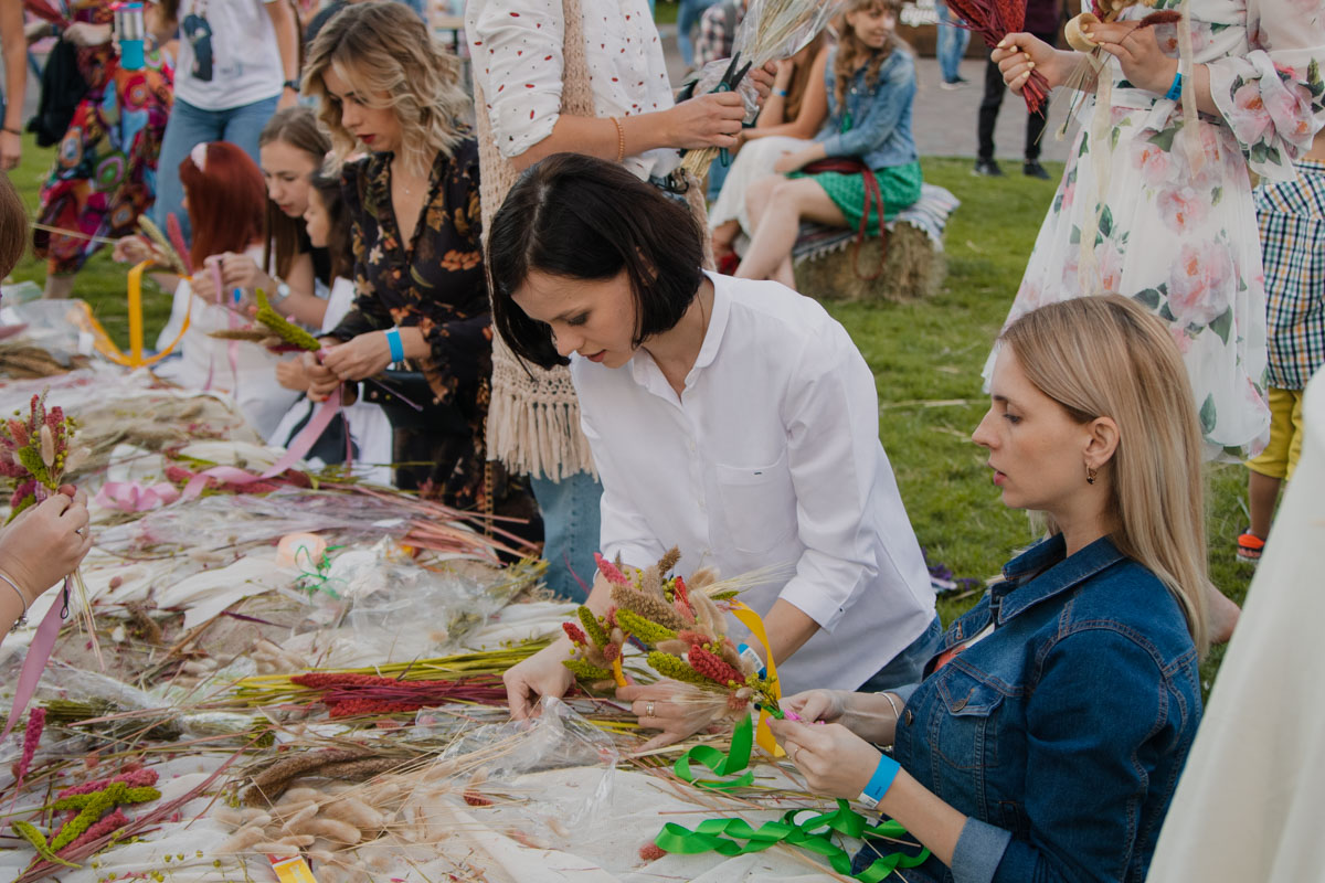 Присутствующие на празднике выстраивались в очереди к гадалке, другие - за вкусной едой на стогах сена, а кто-то в это же время проходил увлекательный и загадочный квест в поисках легендарного цветка папоротника, который приносит счастье и любовь. На празднике можно было сделать красочные фото в пяти фотозонах, которые стали частью лабиринта. А после оказаться в торговом павильоне с интересными аксессуарами, одеждой, картинами и косметикой.По обе стороны локации размещались сцены, где гости могли сидеть на траве или пуфах, и даже качаться на гамаках.