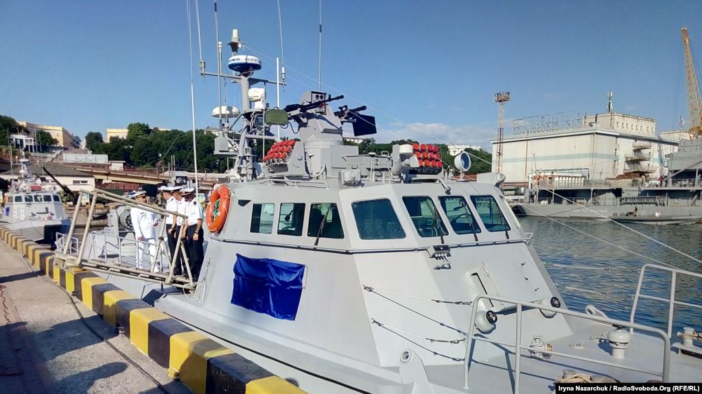 В воскресенье, 7 июля, во время празднования Дня Военно-морских сил Украины, на морском вокзале в Одессе показали новую отечественную разработку - два десантно-штурмовых катера типа "Кентавр". Новая украинская морская техника оборудована реактивной системой залпового огня и боевыми модулями, передает "Радио свобода".