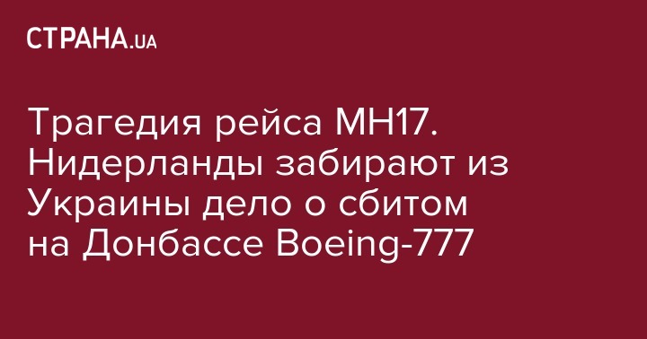 Украина начала процедуру передачи Нидерландам уголовного производства по делу о крушении авиалайнера Boeing-777 рейса МН17, который был сбит в небе над Донбассом в июле 2014 года. Об этом сообщил заместитель министра юстиции Сергей Петухов на своей странице в Facebook.