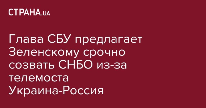 Руководитель СБУ Иван Баканов предлагает президенту Владимиру Зеленскому созвать внеочередное заседание Совета национальной безопасности и обороны Украины из-за запланированного на 12 июля телемоста Украина - Россия.