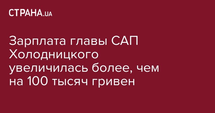 Заработная плата заместителя генпрокурора - специализированного антикоррупционного прокурора, главы САП Назара Холодницкого за июнь по сравнению с маем увеличилась на более, чем 100 тысяч гривен. Она составила 189 358 гривен. В мае же она равняла 85 614 гривням.