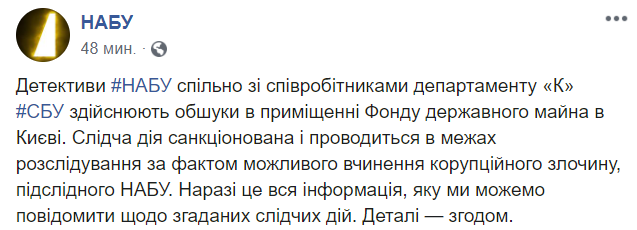 НАБУ совместно с антикоррупционным департаментом СБУ провели обыски в киевском Фонде госимущества