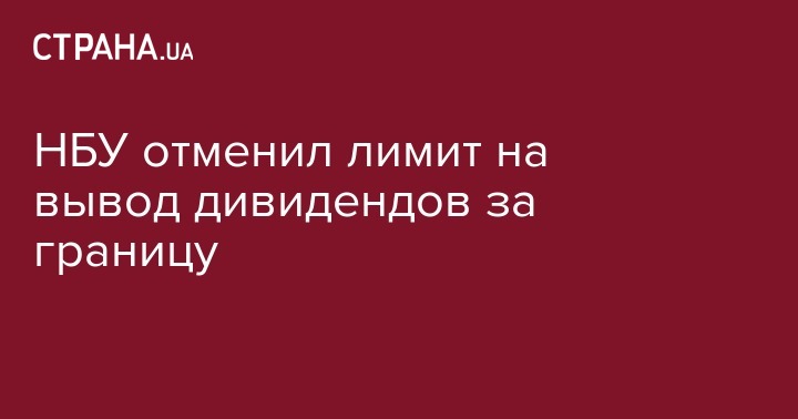 Национальный банк Украины отменил любые ограничения на репатриацию дивидендов. Как отмечено на сайте НБУ, это было сделано для улучшения инвестиционного климата и в соответствии с дорожной картой по валютной либерализации.