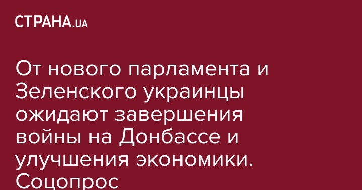 От нового парламента и Зеленского украинцы ожидают завершения войны на Донбассе и улучшения экономики. Соцопрос
