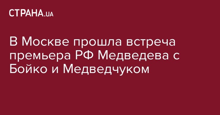 В среду, 10 июля, в Москве проходит встреча премьер-министра Российской Федерации Дмитрия Медведва, а также лидеров "Оппозиционной платформы - За жизнь" Юрия Бойко и Виктора Медведчука, пишет РИА Новости.