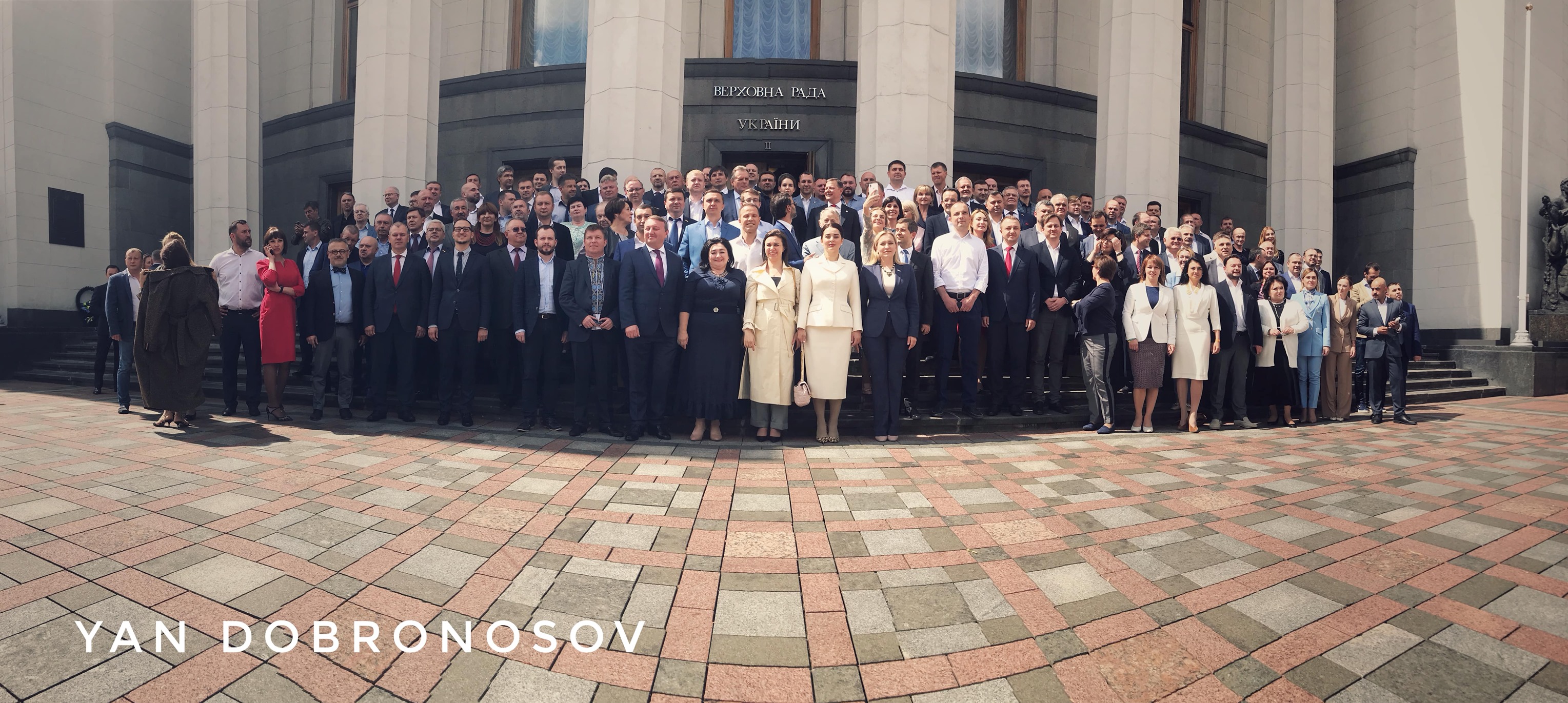 Депутаты Верховной Рады Украины спели Гимн Украины у здания парламента в честь завершения работы 8-го созыва и сделали совместное фото, после чего спикер Андрей Парубий выступил с прощальной речью. Соответствующее видео публикует на своей странице в Facebook фотограф Ян Доброносов.