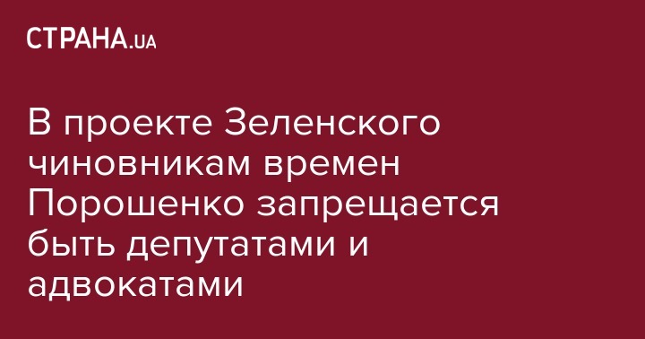 В проекте Зеленского чиновникам времен Порошенко запрещается быть депутатами и адвокатами