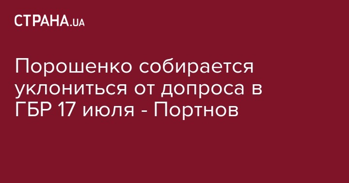 Юрист Андрей Портнов заявил, что бывший президент Петр Порошенко не собирается являться на назначенный ему допрос в ГБР 17 июля. Об этом Портнов написал на своей странице в Facebook.