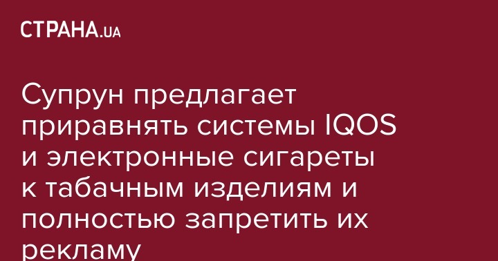 И.о. министра здравоохранения Ульяна Супрун предлагает на законодательном уровне ввести определение электронных сигарет и ограничить продажу табака. Об этом она сообщила в Facebook.