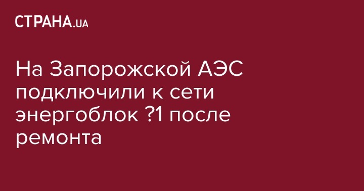 14 июля в 09:25 энергоблок №1 крупнейшей в Украине Запорожской АЭС был подключен к энергосети после завершения текущего ремонта. Об этом сообщает пресс-служба НАЭК "Энергоатом" на сайте компании.