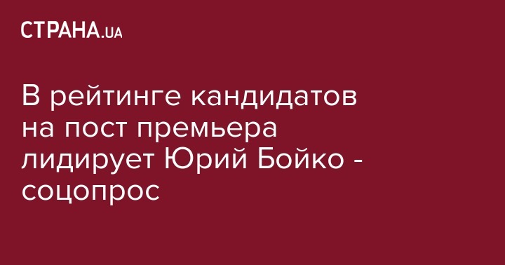 На вопрос социологов, кого вы выбрали бы премьер-министром, будь у вас такая возможность, большинство респондентов ответили: Юрия Бойко. Такие данные совместного исследования обнародовали информационное агентство "Украинские новости" и Центр "Социс".