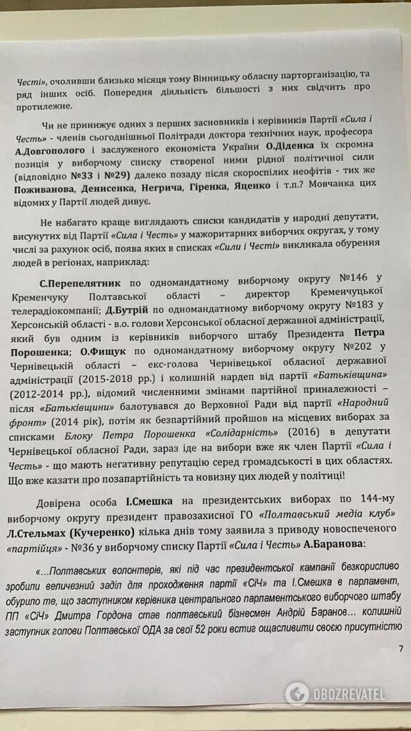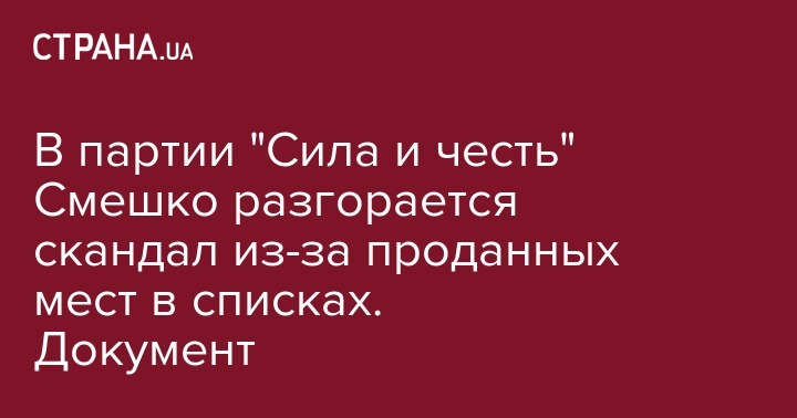 В партии "Сила и честь" Смешко разгорается скандал из-за проданных мест в списках. Документ