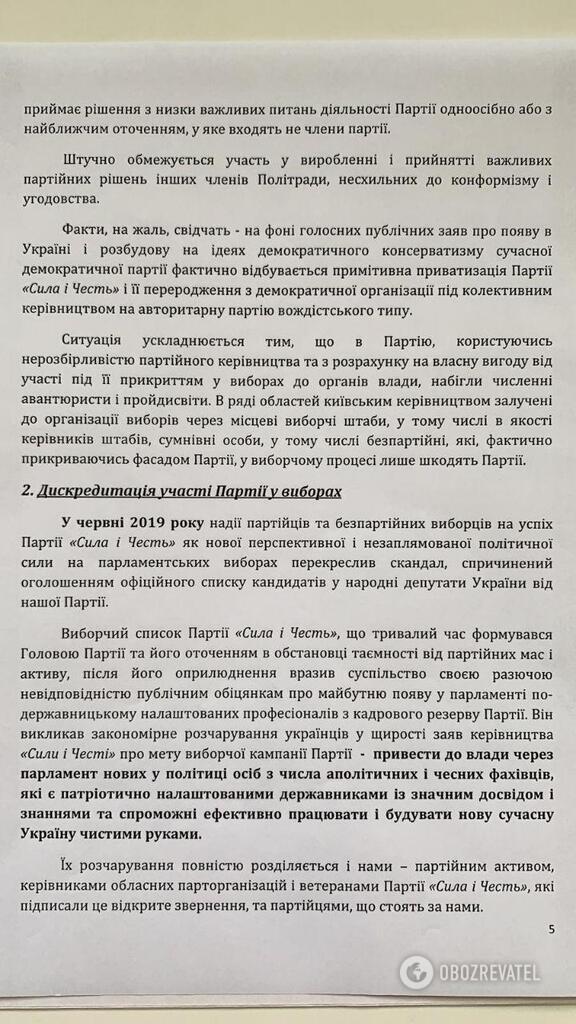 Об этом говорится в открытом обращении партийного руководства "Силы и чести" – руководителей областных ячеек и ветеранов политсилы – в связи с удручающей ситуацией за неделю до внеочередных парламентских выборов, который оказался в распоряжении редакции.