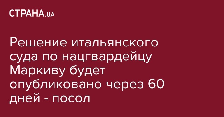 Решение итальянского суда по нацгвардейцу Маркиву будет опубликовано через 60 дней - посол