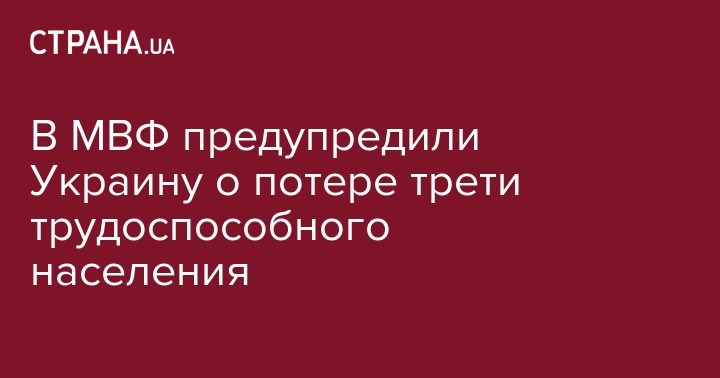 Через 30 лет численность трудоспособного населения в Украине сократится более чем на 30%, сообщается в прогнозе МВФ.