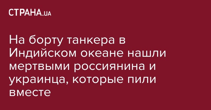 В Индийском океане на борту иностранного судна обнаружен мертвым украинский моряк.  Как сообщили УНИАН в благотворительной организации "Фонд помощи морякам "Ассоль" (Одесса), мужчины обнаружены мертвыми в конце прошлой недели на борту танкера GAS AEGEAN (флаг Либерия). В это время судно находилось в Индийском океане, у северо-запада полуострова Индостан.