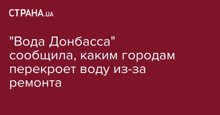 "Вода Донбасса" сообщила, каким городам перекроет воду из-за ремонта