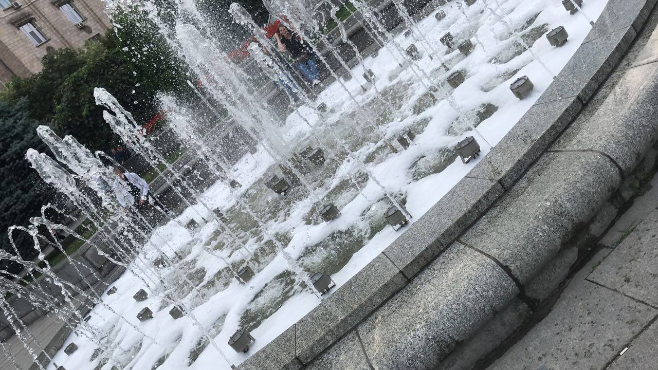 Вода одного из фонтанов на Майдане - Водяного шара, была окрашена в ярко-зеленую краску, а в чашу Малого - добавлен мыльный раствор.