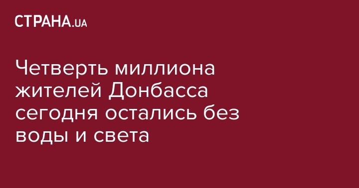 Четверть миллиона жителей Донбасса сегодня остались без воды и света