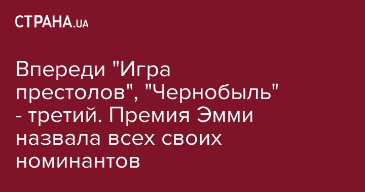 После "Игры престолов" по ​​количеству номинаций идет сериал "Удивительная миссис Мейзел" (20), а нашумевший сериал "Чернобыль" на третьем месте с 19 номинациями.