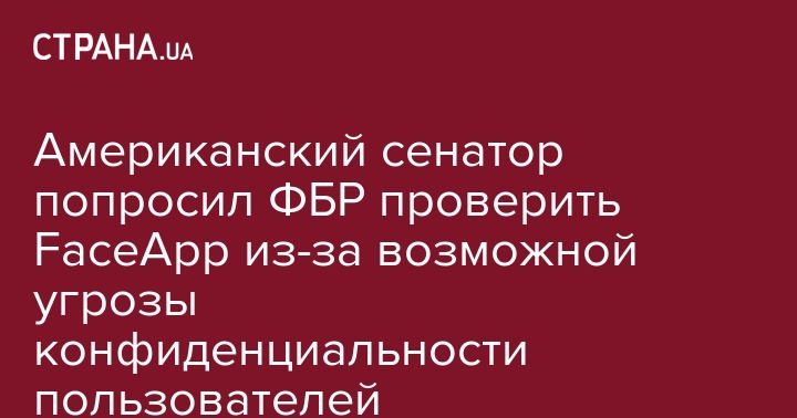 Американский сенатор попросил ФБР проверить FaceApp из-за возможной угрозы конфиденциальности пользователей