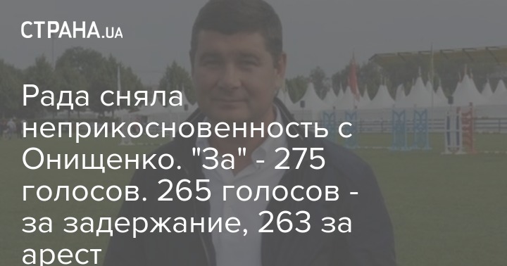"За" это решение проголосовали 275 депутатов. За решение о задержании Онищенко нардепы дали 265 голосов и за его арест проголосовало 263 народных избранника.