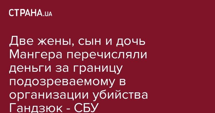Две жены, сын и дочь Мангера перечисляли деньги за границу подозреваемому в организации убийства Гандзюк - СБУ
