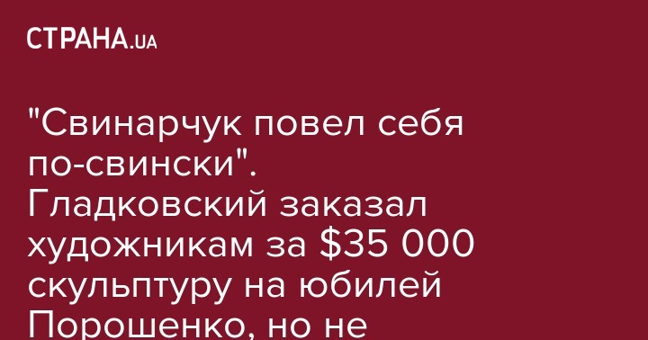 Художник рассказал, что Олег Гладковский заказал у него скульптуру к пятидесятилетнему юбилею Петра Порошенко, стоимостью в 35 тысяч долларов, за которую так и не заплатил. Это было в канун дня рождения экс-президента, в 2015 году.