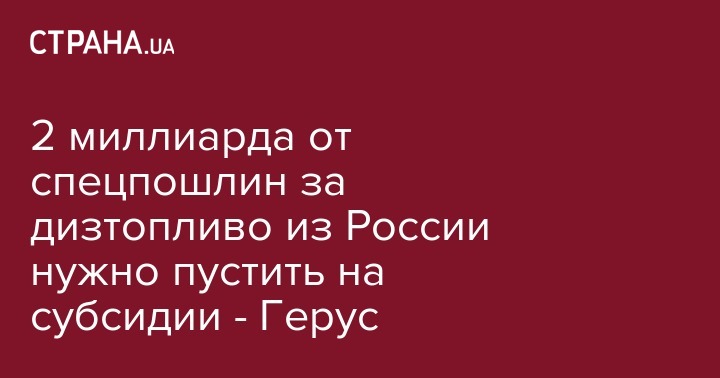 2 миллиарда от спецпошлин за дизтопливо из России нужно пустить на субсидии - Герус