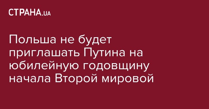 Польские власти считают неуместным присутствие президента России Владимира Путина на памятных мероприятиях по случаю 80-й годовщины начала Второй мировой войны.