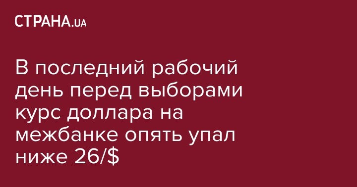 Ранее банкиры объяснили, почему курс доллара перевалил за 26 гривен перед выборами. "Рынок в очередной раз преодолел отметку 26 грн./$ под влиянием вчерашнего "ухода" валюты на оплату долларовых ОВГЗ и нарастающей нервозности накануне парламентских выборов. Она традиционно проявляется в росте спроса на валюту и ее придерживание продавцами при активном участии спекулянтов, разогревающих ажиотажные настроения и пособничестве наличного рынка, лидирующего по девальвационной динамике", - отметил директор казначейства Банка Кредит Днепр Олег Куринной.