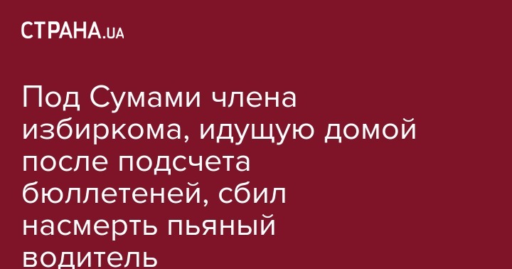 Под Сумами члена избиркома, идущую домой после подсчета бюллетеней, сбил насмерть пьяный водитель