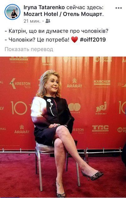 Катрин Денев прилетела в Одессу на МКФ и назвала мужчин потребностью