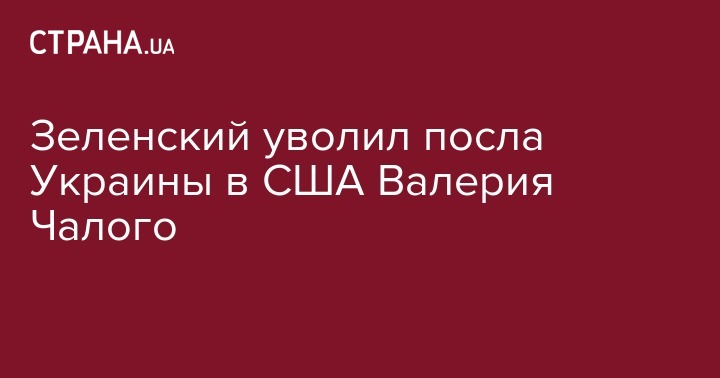Президент Украины Владимир Зеленский уволил Валерия Чалого с должности посла Украины в США, а также с должности украинского посла в Антигуа и Барбуда и Тринидад и Тобаго, которые он занимал по совместительству. Соответствующий указ главы государства №540/2019 от 19 июля 2019 года размещен на сайте президента.