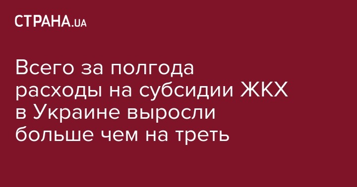 Общая сумма субсидий, предназначенных для компенсации затрат семей на оплату жилищно-коммунальных услуг в Украине, в январе-июне 2019 года составила 916,9 млн грн, что на 37%, или на 249,6 млн грн, выше показателя января-июня 2018 года.