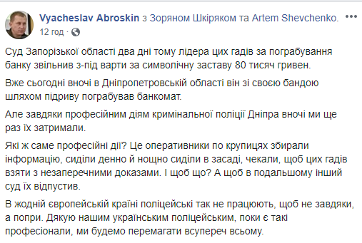 Видео ограбления разместил заместителя главы полиции Украины Вячеслав Аброськин.